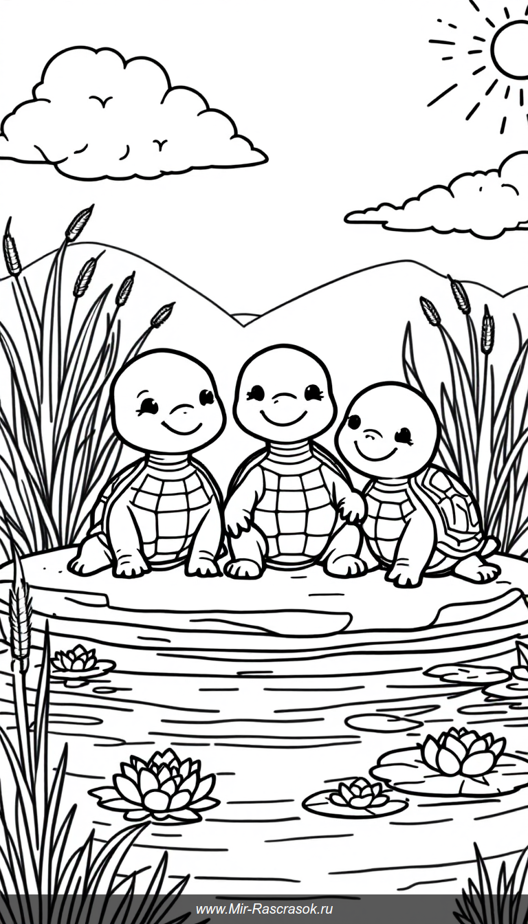 Раскраска с веселыми черепашками подарит детям радость и творческое вдохновение 🐢🌞 Простые и четкие линии идеально подходят для малышей чтобы развить моторику и внимание к деталям 🌿🎨 Отличный выбор для веселого и полезного времяпрепровождения дома или в школе.