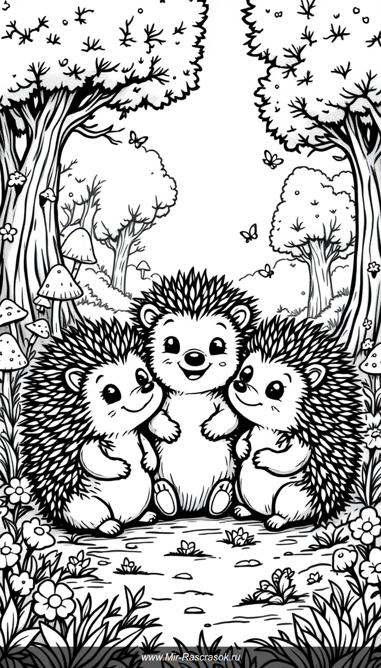 Познакомьтесь с веселыми ежиками в нашей новой раскраске 🦔🌸 Простые линии и милые детали подарят радость детям и помогут развить творческие способности 🎨🌟 Раскрашивайте и создавайте свой сказочный лес вместе с нами 🍄🐾
