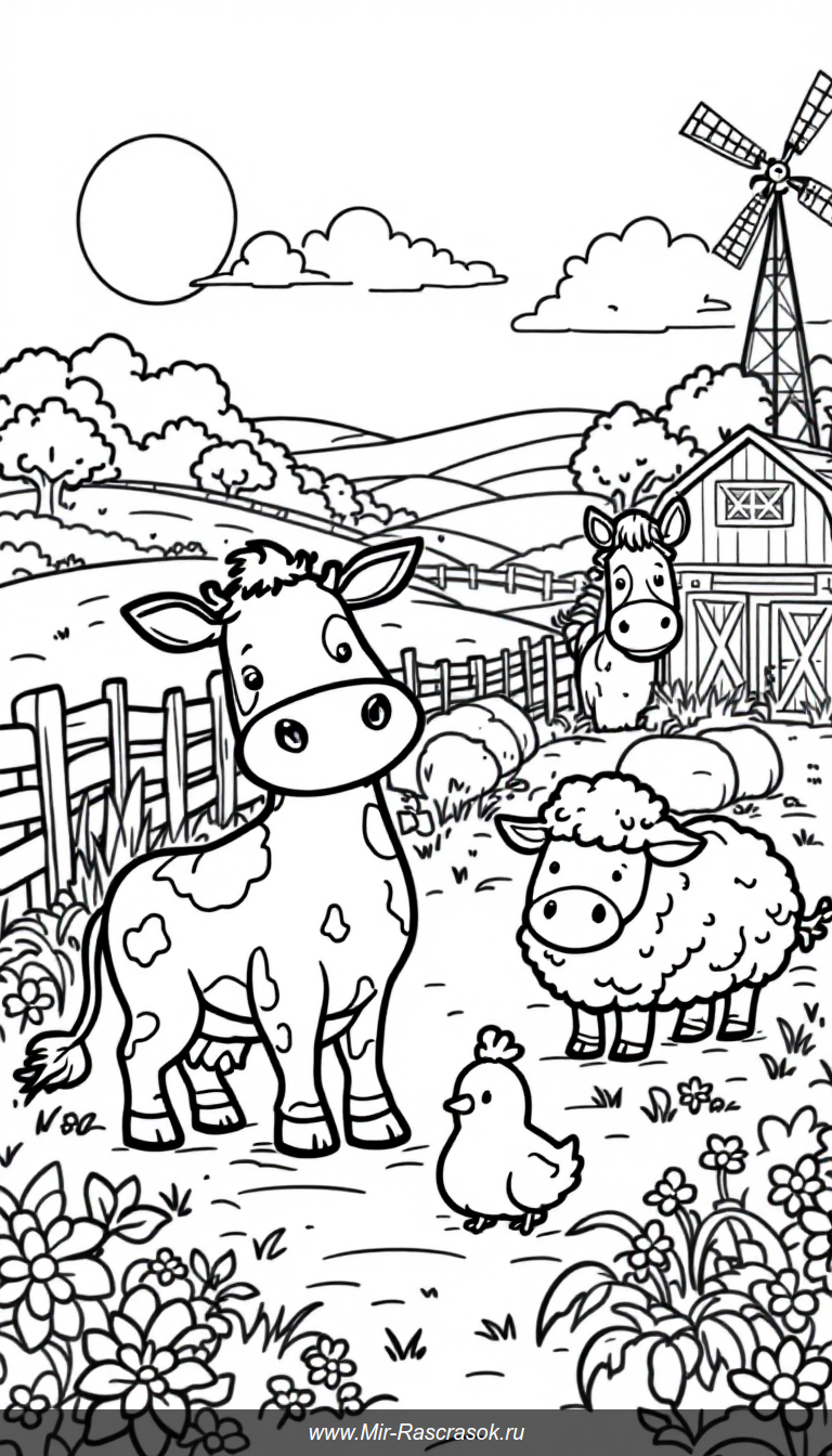 Веселые фермерские животные на ферме ждут ваших цветов в новой раскраске для детей 🐄🐖🐑🐔🐴 Раскрасьте дружелюбные контуры и развивайте моторику рук 🎨 Отличный материал для занятий дома и в детском саду и идеально подходит для запросов о раскрасках ферма животные детские раскраски