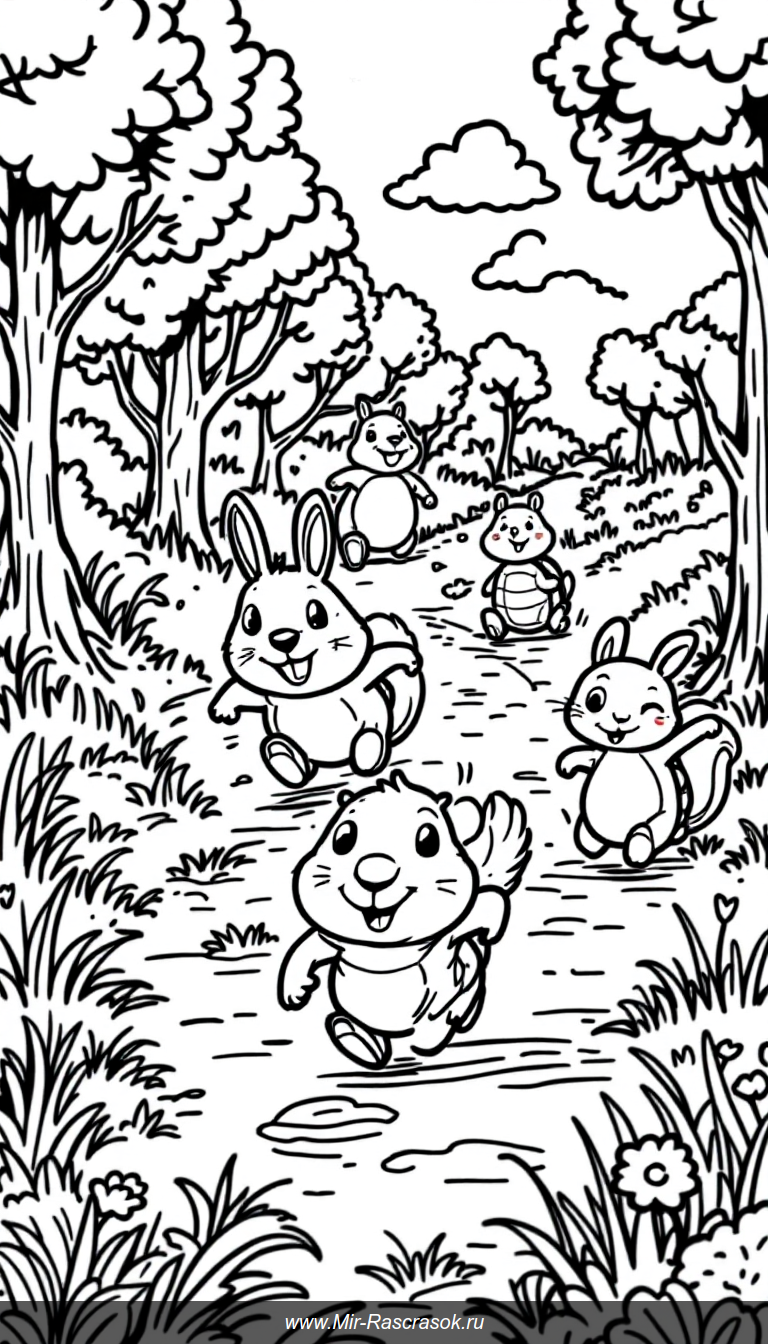 Приглашаем в захватывающий мир детских раскрасок с веселыми гонками капибары и ее лесных друзей 🐾🌳 Простые и дружелюбные рисунки помогут развить фантазию и мелкую моторику у детей 🎨 Отличный способ провести время весело и с пользой для всей семьи 🚀