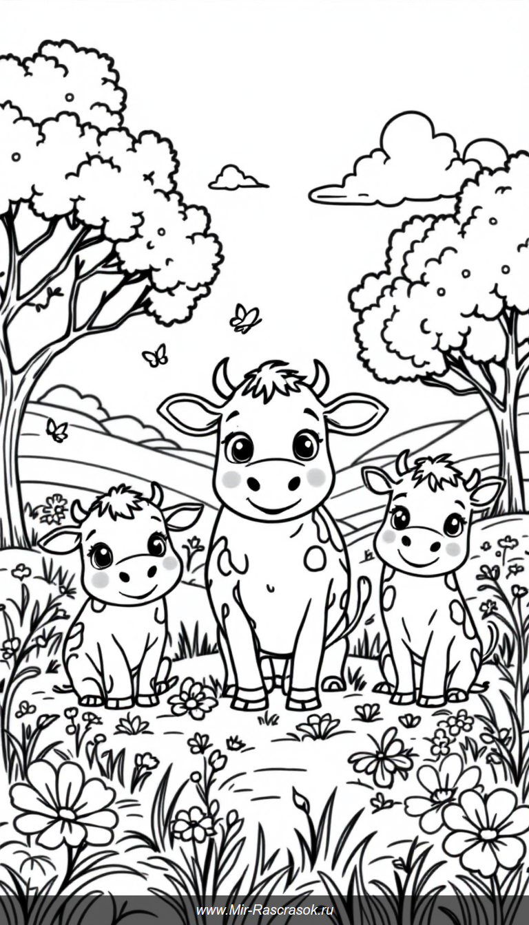 Веселые коровы на лугу ждут своих друзей раскрасить их яркими цветами 🌼🐄 Увлекательная и простая раскраска для детей поможет развить творческие способности и подарит много радости 🎨🌞