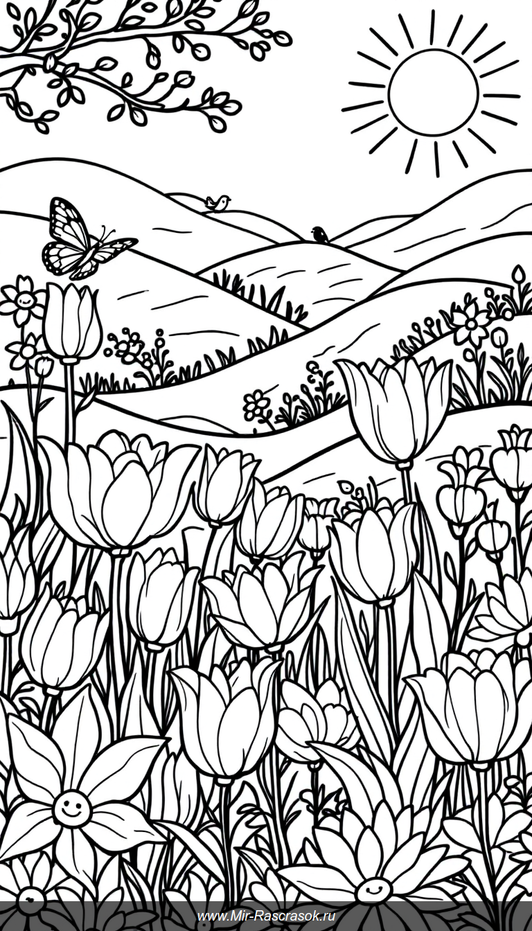 Весна пришла и приносит радость с яркими цветами тюльпанов и ромашек в раскрасках 🌷🐞🦋 Воображение ребёнка расцветает вместе с простыми и позитивными рисунками для творчества и развития 🌞🎨