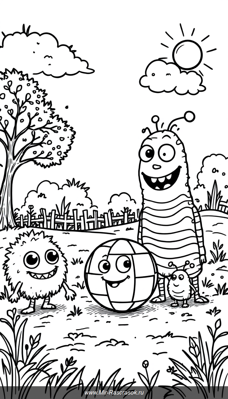 Весёлая раскраска с монстриками для детей вдохновляет на творчество и смех 😄🧸 Раскрась дружелюбных монстров из картинки на ярком поле и развивай моторику рук и воображение 💡🎨 Подходит для домашних занятий и школьных занятий по этим персонажам